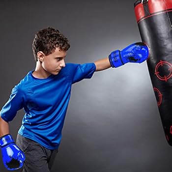 Amazon Com Kids Boxing Glove 6oz 8oz Youth Boys And Girls Training Sparring Gloves For Punching Bag Kickboxing Muay Thai Mma Ufc Gift For Age 6 15 Years Blue 6 Oz 45 80 Lbs